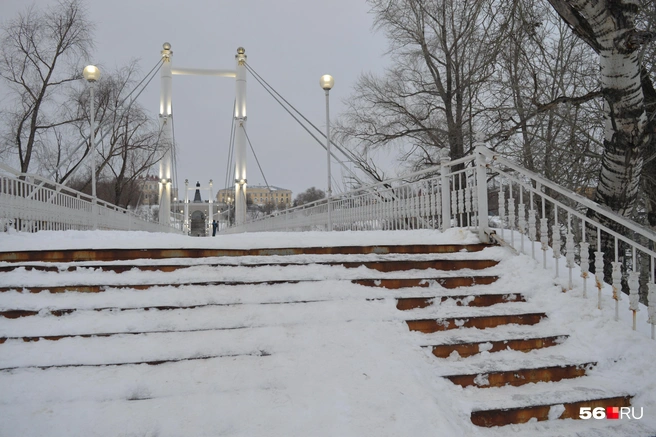 Январь 2026 года «подарил» жителям Оренбурга много снега, которым покрылись и ступеньки пешеходного моста, ведущего к Зауральной роще. Поэтому спуститься по лестницам и попасть на территорию парка — был тот еще квест. Частично одну из лестниц все же почистили, но и там нужно проявлять осторожность — потому что скользко. Лестница справа от моста полностью покрыта снегом и превратилась в горку, на которой на тюбингах катаются дети.