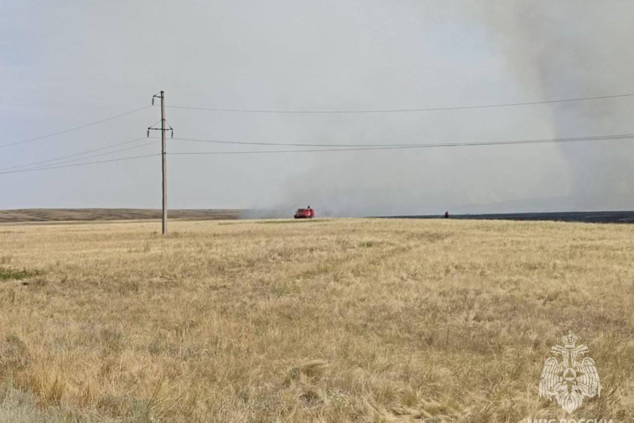 Под Соль-Илецком горела степь. Ветер и сухая погода мешали пожарным — «жаркое» видеоС огнем боролись 34 человека